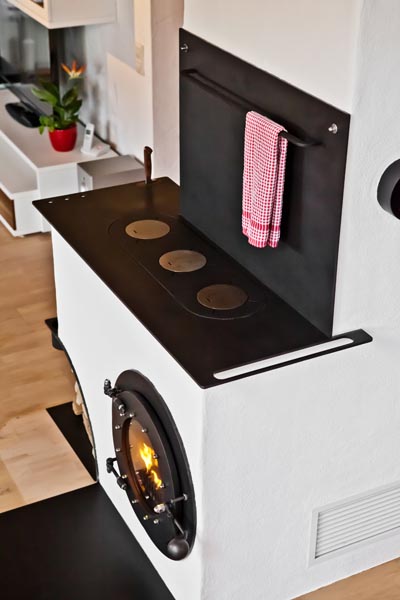 In Wohnküchen entfaltet er seine volle Stärke, spendet angenehme Wärme und bietet eine vollwertige Kochstelle, die zum Schmoren, Grillen, Garen und Backen einlädt. Mit zusätzlichen Speicherelementen entstehen warme Thekenlösungen oder klassische Sattelherde, die den Raum aufwerten und das Feuererlebnis eines hochwertigen Ofens spürbar machen. Rauch und Gerüche werden dabei zuverlässig über den Schornstein abgeführt – für ein sauberes, angenehmes Raumklima.